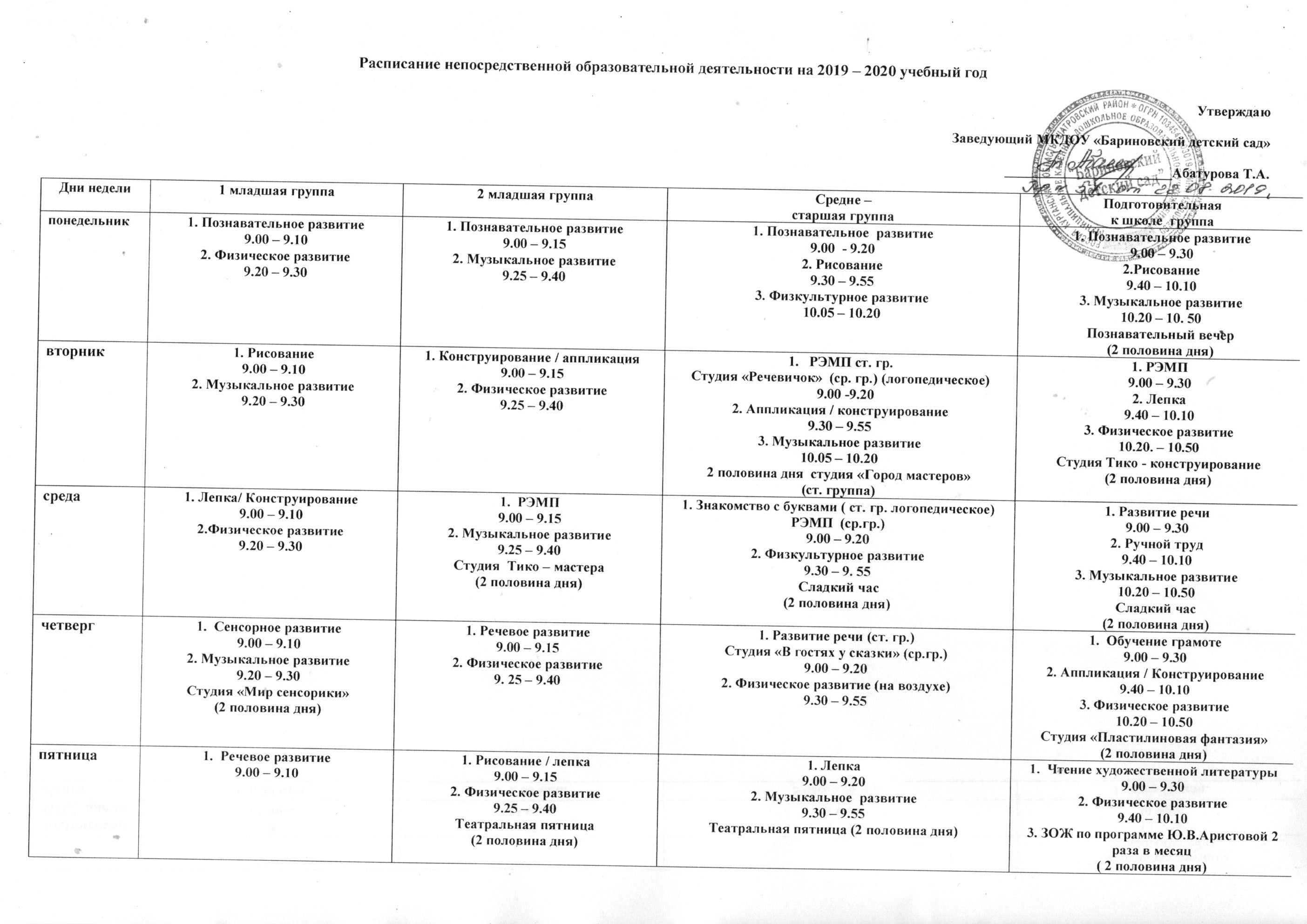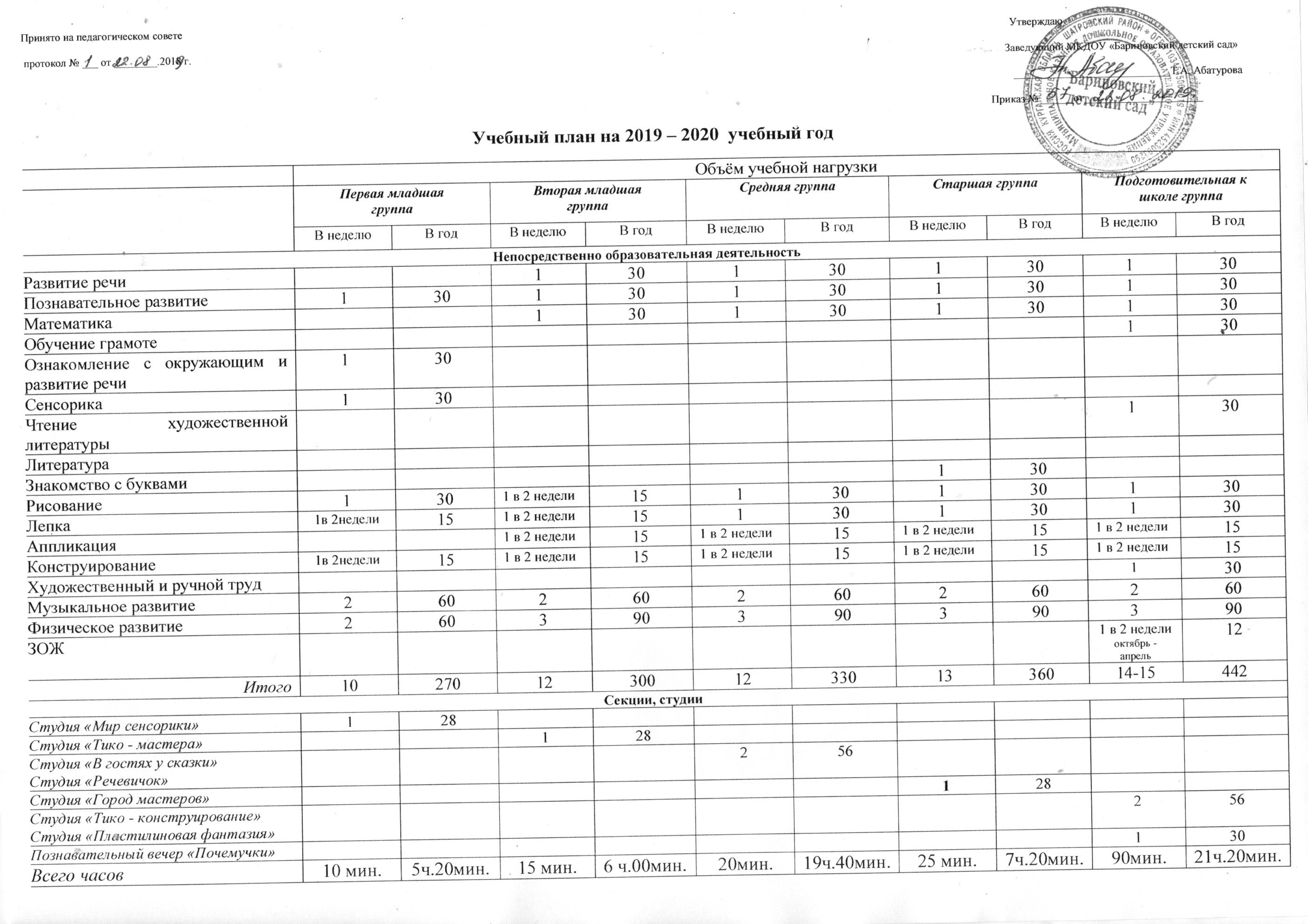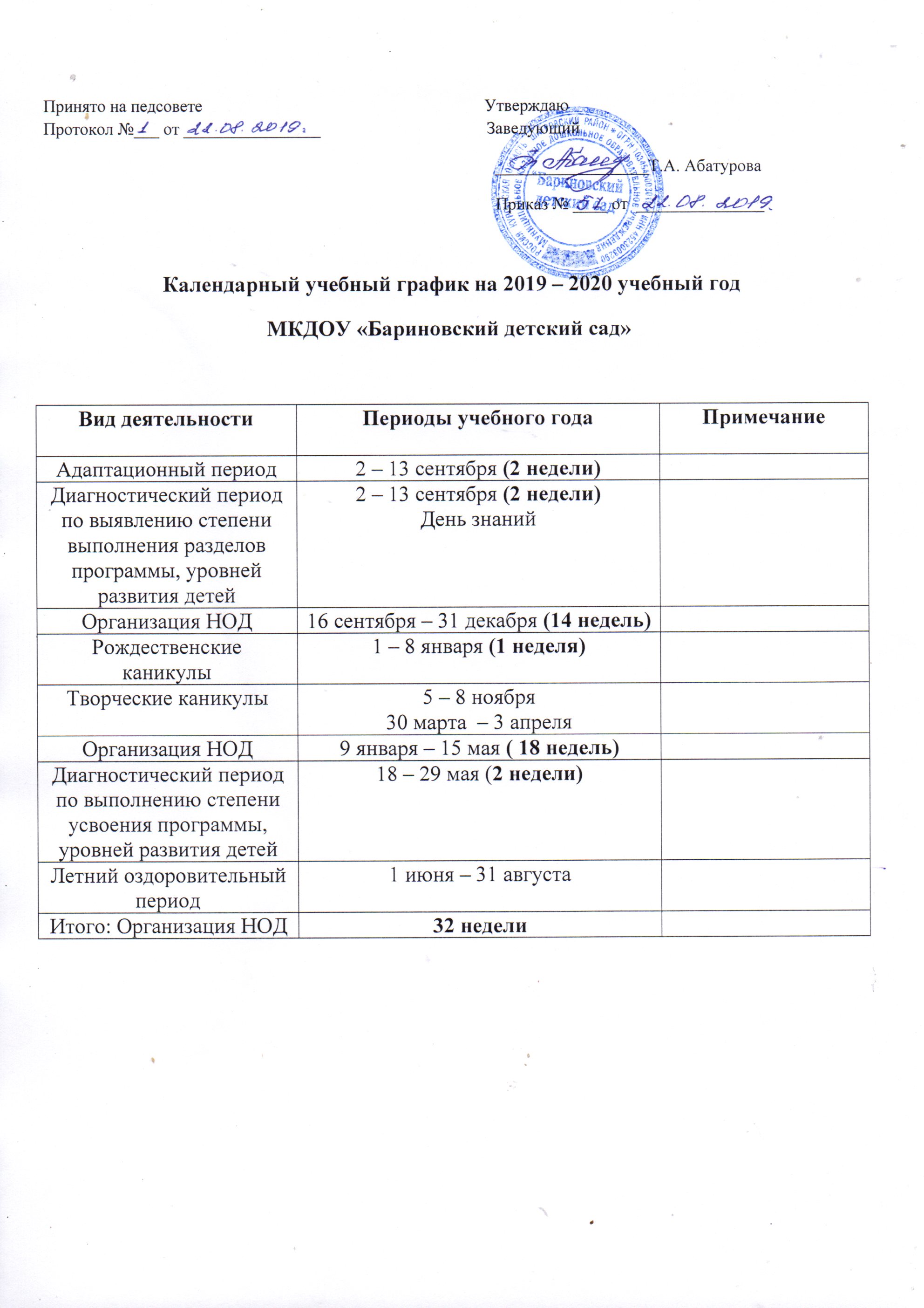 Годовой план работы МКДОУ "Бариновский детский сад" на 2019-2020 уч.год